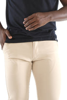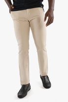 Designed for everyday ease and effortless style, these slim-fit beige trousers from Francisco Tolli are tailored in a cotton Lycra blend that moves with you. The clean, no-pleat silhouette offers a sharp modern look, while the self-textured fabric adds quiet detail. A versatile base for casual shirts or crisp polos.