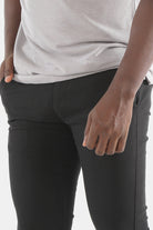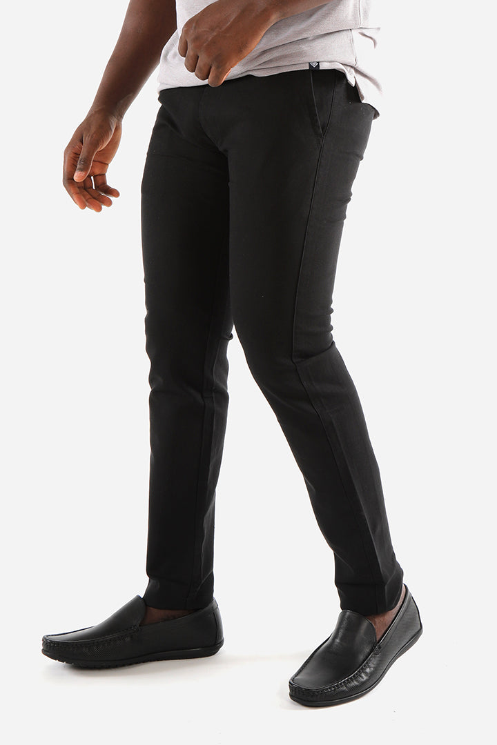 A timeless wardrobe essential, these slim-fit black trousers by Francisco Tolli bring versatility and sophistication to casual dressing. Crafted from a breathable cotton Lycra fabric, they offer just the right amount of stretch for day-long comfort. The no-pleat, self-textured design keeps the silhouette clean and contemporary, making them perfect for pairing with anything from crisp shirts to casual tees. Whether you're heading to a weekend brunch or a casual evening out, these trousers deliver effortless style with every wear.