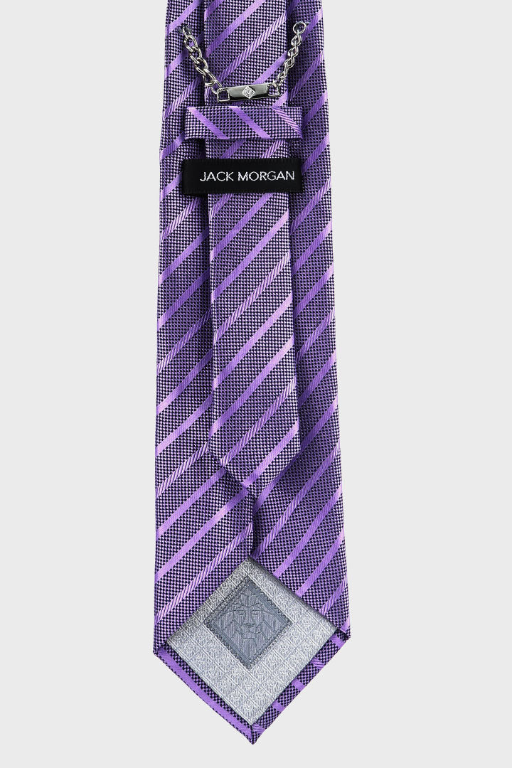 A striped purple tie from Jack Morgan is one of the must-haves in every working man’s wardrobe. This striped purple tie goes well on any color suit and shirt. Surf through the fashionable range of striped purple ties online and in-store. Fabric: Micro fabric | SKU: TIE-JM-10 | Special features: Formal, designed, striped design | Fit: Classic fit | Size: 8 cm